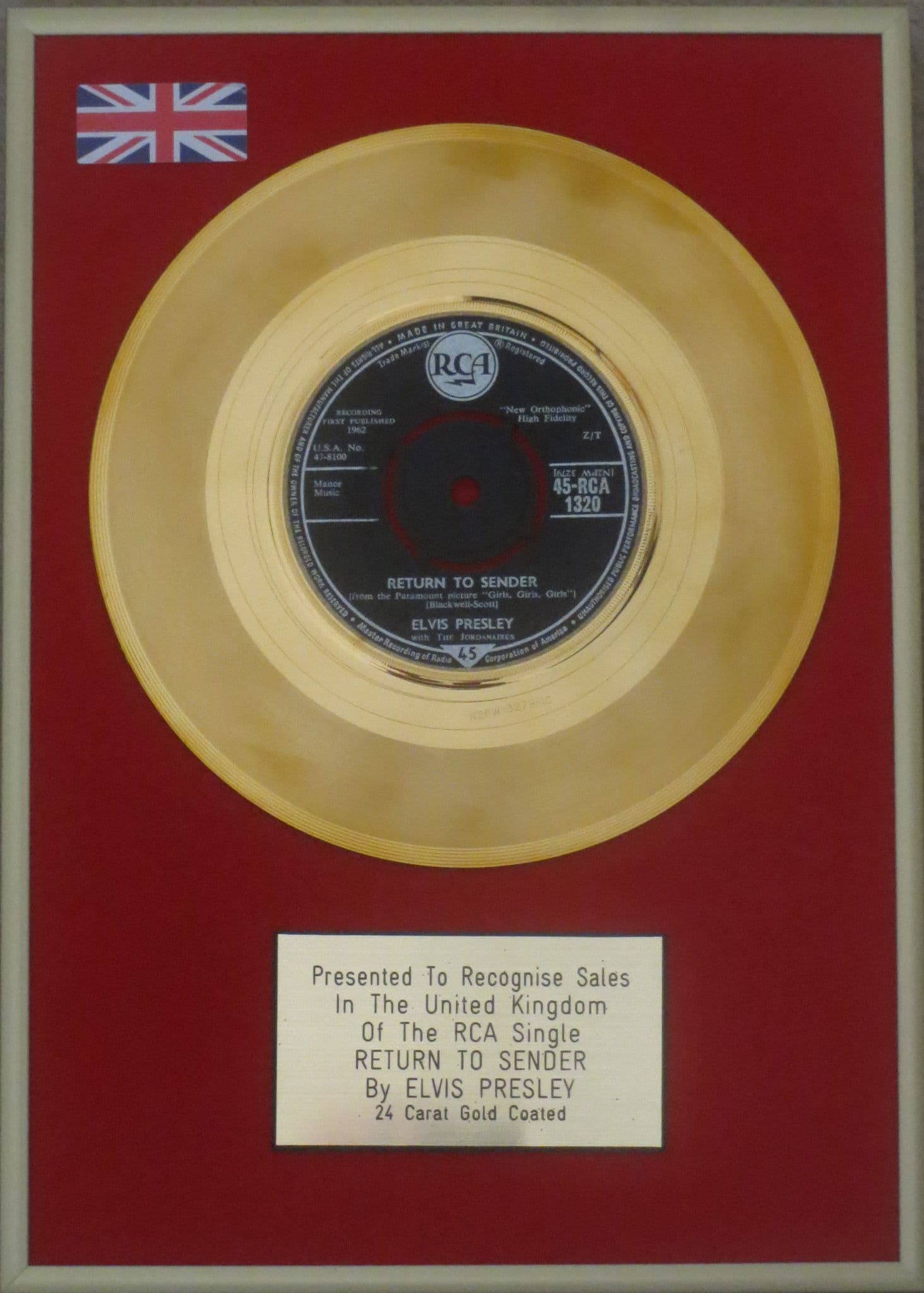ELVIS PRESLEY - 24 Carat Gold 7" - RETURN TO SENDER