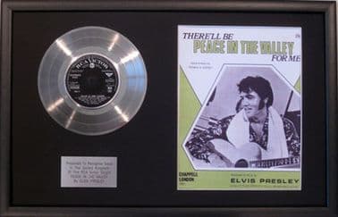 ELVIS PRESLEY - 7" Platinum Disc+Song Sheet- PEACE IN THE VALLEY