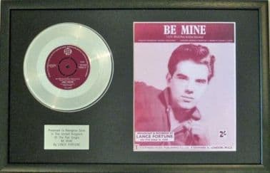 BE MINE By LANCE FORTUNE This original vinyl 7" disc is professionally mounted on a black background and framed in a quality black ash frame size 20" x 12.5" (50cmz x 32cms)