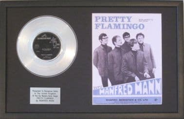 'PRETTY FLAMINGO' By MANFRED MANN This original vinyl 7" disc is professionally mounted on a black background and framed in a quality black ash frame size 20" x 12.5" (50cmz x 32cms)