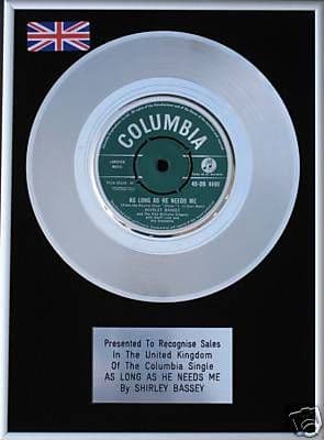 SHIRLEY BASSEY-7" Platinum Disc-AS LONG AS HE NEEDS ME